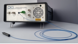 FOHS光纖水聽器是一款高帶寬、高靈敏度的光纖水聽器系統(tǒng),其工作頻率覆蓋了0.25MHz到40MHz。該系統(tǒng)由光纖探頭、光源、光電檢測器、以及數(shù)據(jù)采集模塊組成,其中光纖探頭的末端進(jìn)行了鍍膜處理,以增強(qiáng)光反射的效果。該系統(tǒng)采用了法布里-鉑羅干涉儀的原理:測量時,激光由光源產(chǎn)生并射入光纖探頭,入射光在光纖末端腔體內(nèi)的鍍膜層產(chǎn)生反射;加載在光纖探頭上的聲波導(dǎo)致光纖末端的腔體產(chǎn)生形變,進(jìn)而使反射光產(chǎn)生相位變化。通過光電檢測器對從光纖回來的反射光進(jìn)行解調(diào),得到交流和直流兩種信號。交流信號直接連接到示波器,通過示波器采集與顯示聲波波形;直流信號通過數(shù)據(jù)采集模塊連接到電腦,用于溫度數(shù)據(jù)的采集與顯示。